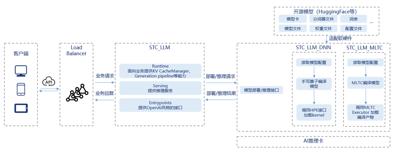 STC_LLM_DNN是大模型通过手写算子等特殊处理编译后部署LLM的框架。STC_LLM_MLTC是大模型通过MLTC编译器编译后部署LLM的框架。目前,采用STC_LLM_DNN框架进行编译部署的大模型,在推理环节展现出更优的性能表现。